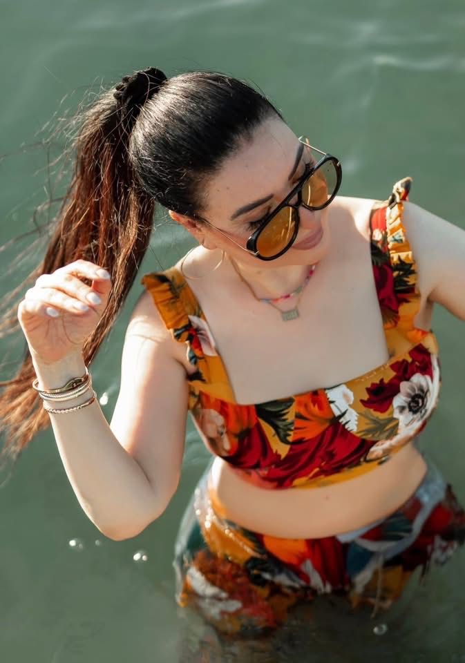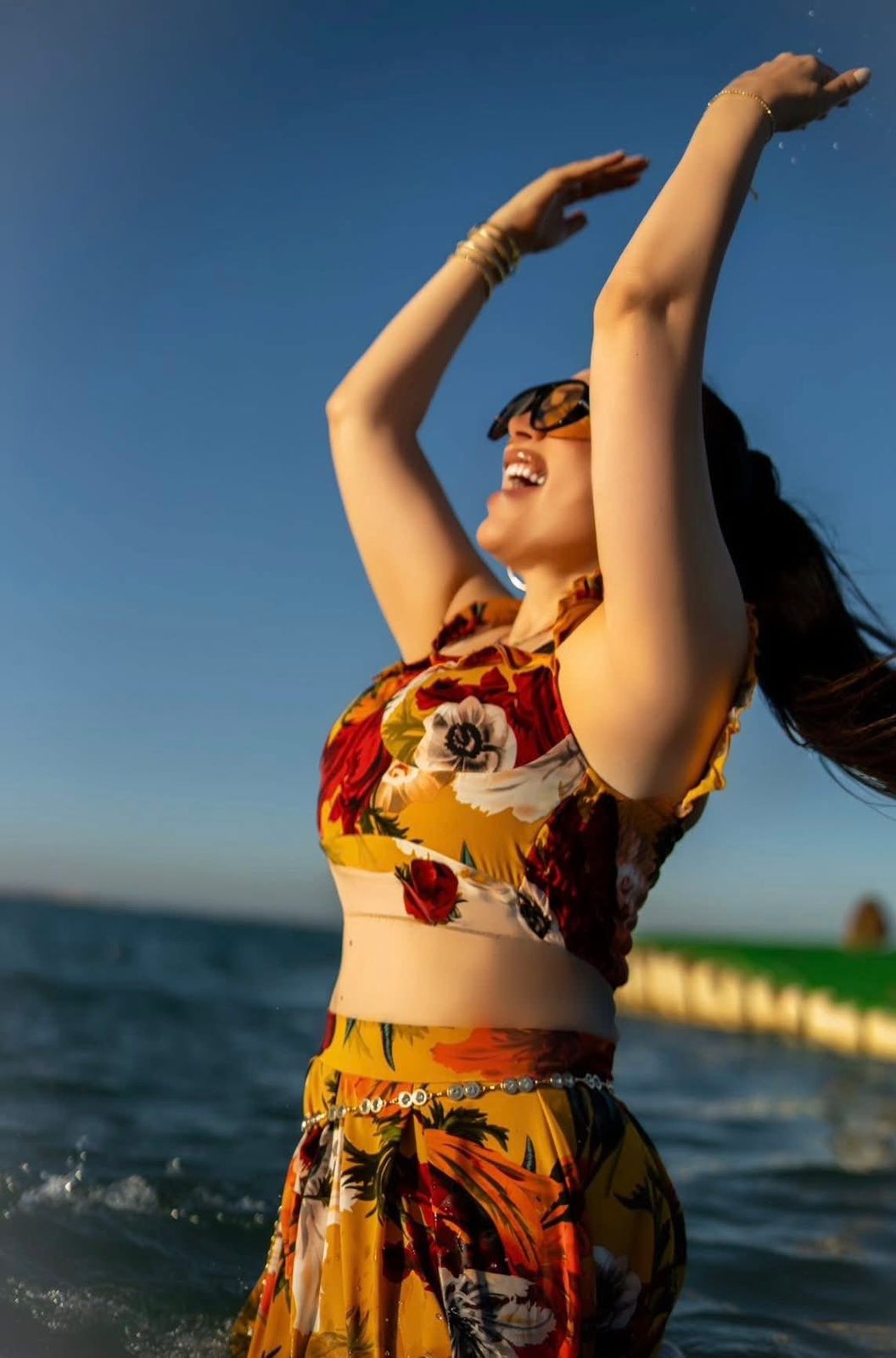 وارتدت عبير طقمًا أنيقًا مزينًا بنقوش الزهور الملونة، ما أضفى عليها لمسة من البهجة والعفوية، خاصة مع ابتسامتها الطبيعية التي خطفت قلوب متابعيها، وبدت في الصور في حالة من الاسترخاء والتناغم مع أجواء الصيف.