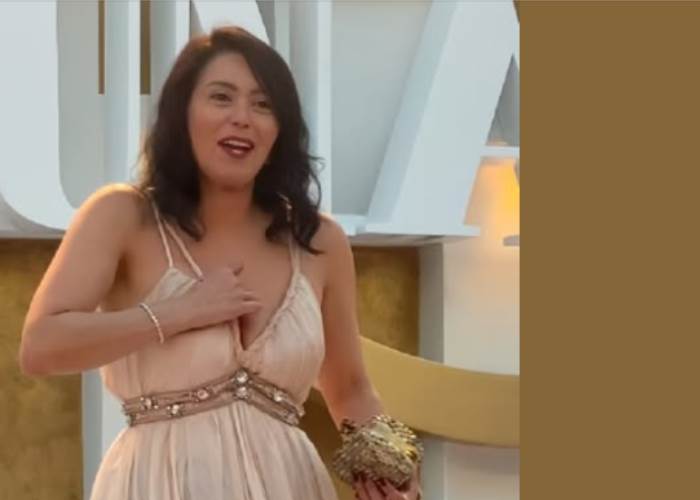 وبحسب شهود عيان، فقد طلبت لقاء من المصورين التوقف عن التصوير قائلة: "بلاش تصوروني جوزي هيطلقني"، بينما كانت تحاول تعديل الفستان وإخفاء منطقة الصدر بيدها. وبدت علامات الارتباك واضحة عليها خلال مرورها على الريد كاربت.