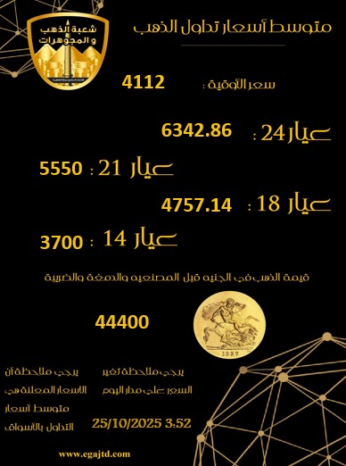 أعلنت شعبة الذهب والمجوهرات عن متوسط أسعار تداول الذهب اليوم، مسجلةً ارتفاعات جديدة في الأسواق المحلية.