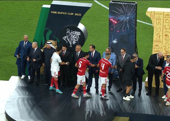 أثار أحمد مصطفى «زيزو»، لاعب النادي الأهلي، حالة من الجدل خلال مراسم تتويج فريقه بلقب السوبر المصري 2025، بعد أن تجاهل مصافحة هشام نصر، نائب رئيس مجلس إدارة نادي الزمالك.