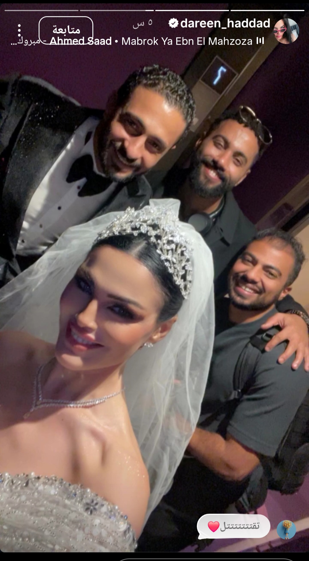 وكانت دارين حداد قد أعلنت زواجها رسميًا عبر حسابها على إنستجرام، من خلال صورة جمعتها بزوجها مع إخفاء وجهه، وهو ما أثار تفاعلًا واسعًا بين متابعيها، الذين انهالت تعليقاتهم بالتهنئة والمباركات.