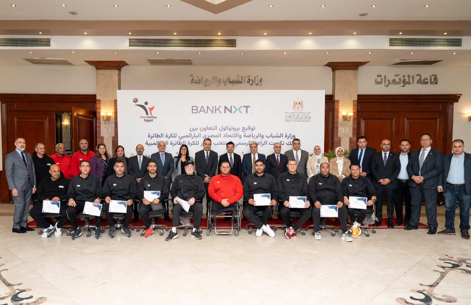 وقد وقّع عقد الرعاية من جانب الوزارة الدكتور محمد الكردي رئيس قطاع الرياضة ومن جانب بنك نكست الأستاذة إيمان بدر، نائب الرئيس التنفيذي للخدمات المصرفية للأفراد والتسويق والشمول المالي، وعن الاتحاد المصري للكره الطائرة البارالمبي الكابتن عماد رمضان رئيس الاتحاد.