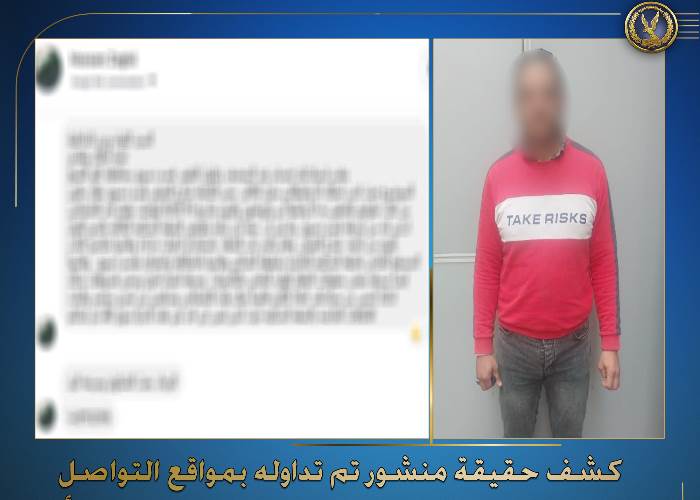 وتم إتخاذ الإجراءات القانونية دون تجاوز حياله ، وأمكن تحديد وضبط القائم على النشر (تاجر – مقيم بدائرة قسم شرطة دسوق "زوج شقيقة المتهم") وبسؤاله أقر بإدعائه الكاذب، وتم إتخاذ الإجراءات القانونية حياله.
