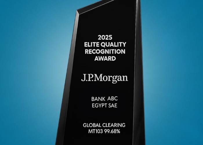 تماشياً مع استراتيجيته في تقديم تجربة متميزة لعملائه حصل بنك ABC مصر على جائزة J.P. Morgan Elite Quality Award المرموقة، وذلك تقديرًا لأدائه الاستثنائي في مجال المعالجة الآلية الكاملة للمدفوعات الدولية (Straight-Through Processing – STP).