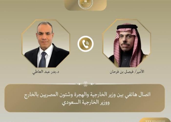 أجرى د. بدر عبد العاطي وزير الخارجية والهجرة وشئون المصريين بالخارج، والأمير فيصل بن فرحان وزير خارجية المملكة العربية السعودية الشقيقة، واتصالا هاتفيا، ذلك في إطار التنسيق والتشاور بين البلدين الشقيقين حول سبل تعزيز العلاقات الثنائية والقضايا الإقليمية ذات الاهتمام المشترك.