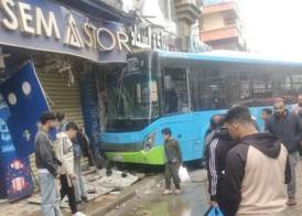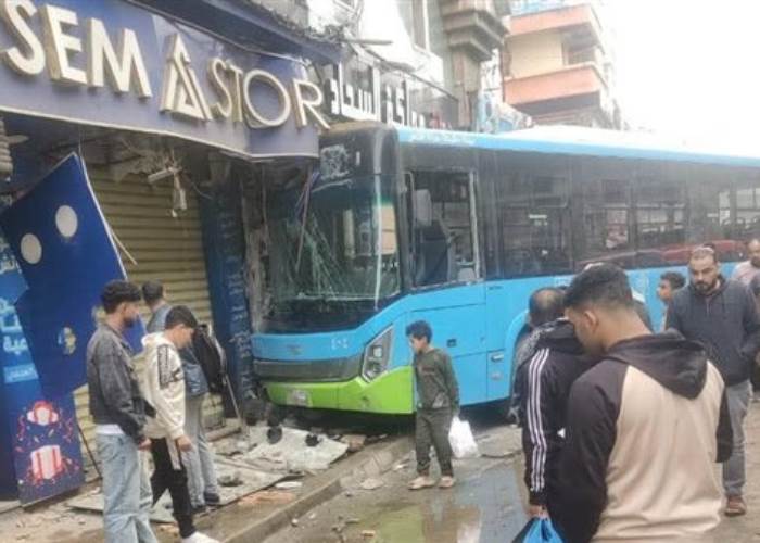 تصادم أتوبيس نقل عام بمحل تجاري في الإسكندرية