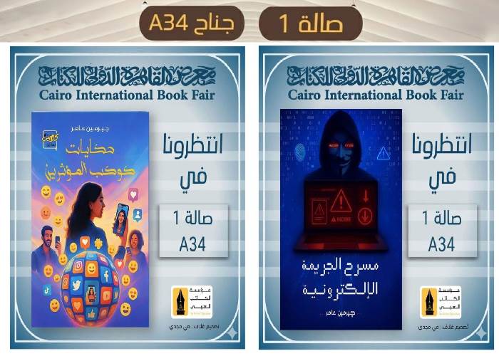 يشارك كتاب "حكايات كوكب المؤثرين" وكتاب "مسرح الجريمة الإلكترونية" في معرض القاهرة الدولي للكتاب بنسخته ال 57  للكاتبة والإعلامية چرمين عامر – عضو إتحاد الإعلاميين العرب وإتحاد كتاب مصر.
