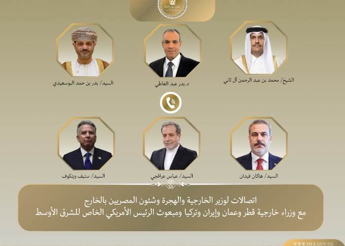 وشملت الاتصالات كلًا من عباس عراقجي، وزير خارجية إيران، وستيف ويتكوف، المبعوث الأمريكي الخاص للشرق الأوسط، والشيخ محمد بن عبد الرحمن، رئيس وزراء ووزير خارجية قطر، وهاكان فيدان، وزير خارجية تركيا، وبدر بن حمد البوسعيدي، وزير خارجية سلطنة عمان