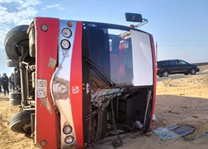 أصيب 34 شخصًا صباح اليوم، إثر انقلاب أتوبيس على طريق 36 الحربي بعد منطقة صينية أبو صوير، في اتجاه مدينة القصاصين بمحافظة الإسماعيلية، ما استدعى تدخلًا طبيًا سريعًا لنقل المصابين وتقديم الإسعافات اللازمة.
