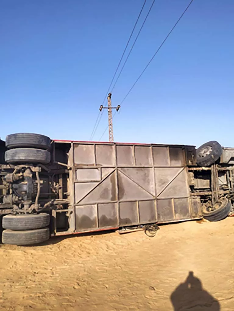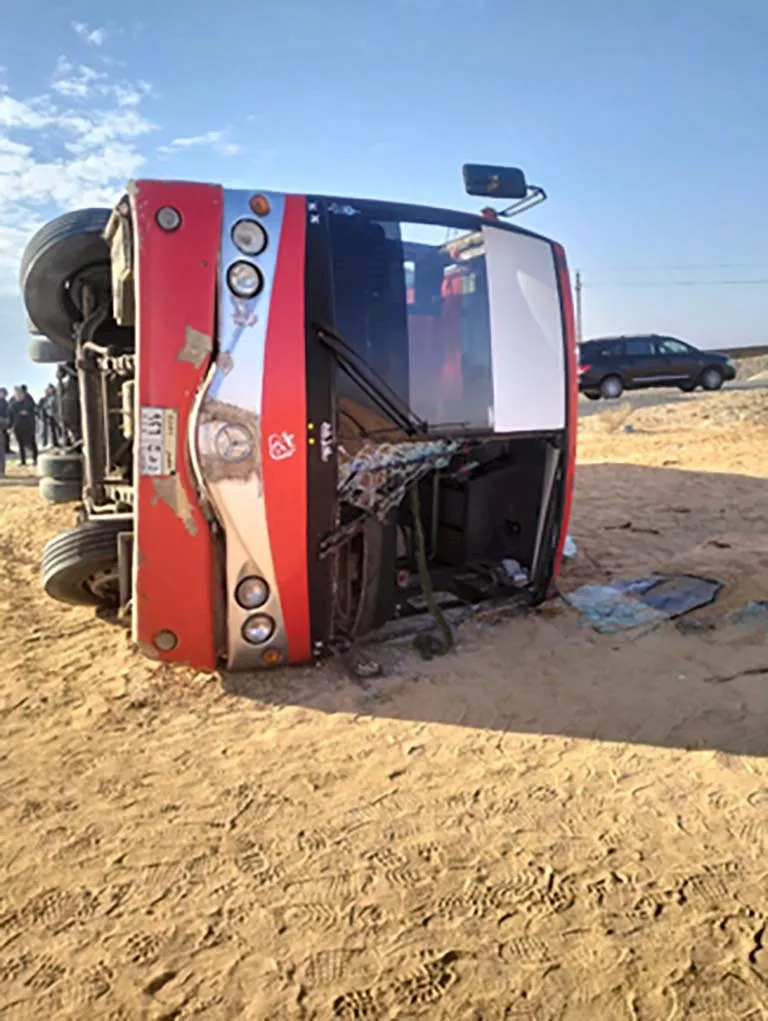 أصيب 34 شخصًا صباح اليوم، إثر انقلاب أتوبيس على طريق 36 الحربي بعد منطقة صينية أبو صوير، في اتجاه مدينة القصاصين بمحافظة الإسماعيلية، ما استدعى تدخلًا طبيًا سريعًا لنقل المصابين وتقديم الإسعافات اللازمة.