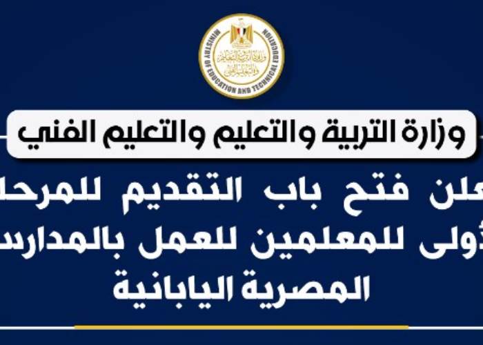أعلنت وزارة التربية والتعليم والتعليم الفني فتح باب التقديم للمرحلة الأولى للمعلمين الراغبين في العمل بالمدارس المصرية اليابانية، اعتبارًا من اليوم الثلاثاء 24 مارس ولمدة شهر، من خلال الموقع الإلكتروني: