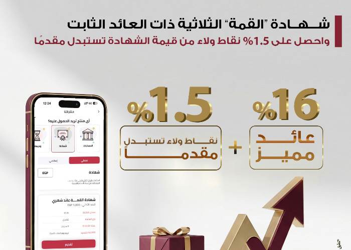 شهادة "القمة" الثلاثية من بنك مصر.. عائد ثابت يتيح 1.5% نقاط ولاء من قيمة الشهادة تستبدل مقدماً