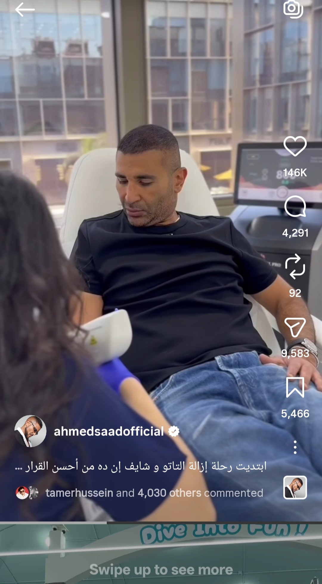 شارك الفنان أحمد سعد متابعيه مقطع فيديو عبر حسابه الرسمي على موقع “إنستجرام”، وثّق خلاله لحظة إزالة الوشم الخاص به، موضحًا الدوافع وراء هذه الخطوة.