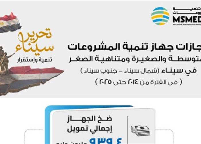 وفي سياق متصل، أشار البيان إلى أن الجهاز ضخ تمويلات بلغت 939.4 مليون جنيه في شمال وجنوب سيناء خلال الفترة من 2014 حتى 2025، مولت نحو 10 آلاف مشروع، وأسهمت في توفير حوالي 25 ألف فرصة عمل، إلى جانب 23 مليون جنيه منح لمشروعات البنية الأساسية والتنمية المجتمعية والتدريب، بما وفر نحو 300 ألف يومية عمل.