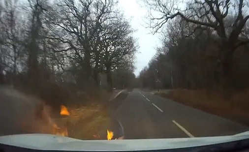 وقد التقطت كاميرا لوحة قيادة سيارة حادث مروع أثار ذعر سائق سيارة وتكبد له الخسائر المادية، فبينما يقود الرجل سيارته على طريق " فورست أوف دين" البريطاني.