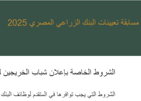 الآن.. وظائف بالبنك الزراعي المصري 2025 لجميع المحافظات.. ننشر الرابط والمستندات